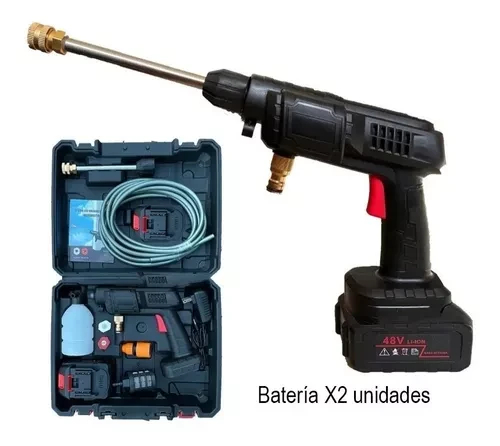 Hidrolavadora portátil y potente, ideal para lavar vehículos, limpiar pisos, vallas o regar el jardín con total comodidad. Su diseño inalámbrico ligero permite transportarla fácilmente y usarla en cualquier lugar sin depender de conexiones fijas.